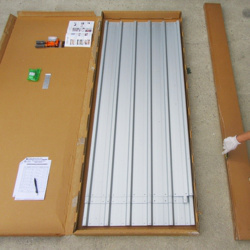 2:説明書・細長いダンボール・パネル・ビス類の入った緑の袋・リベッター・リベッター専用ネジが入っているか確認する。